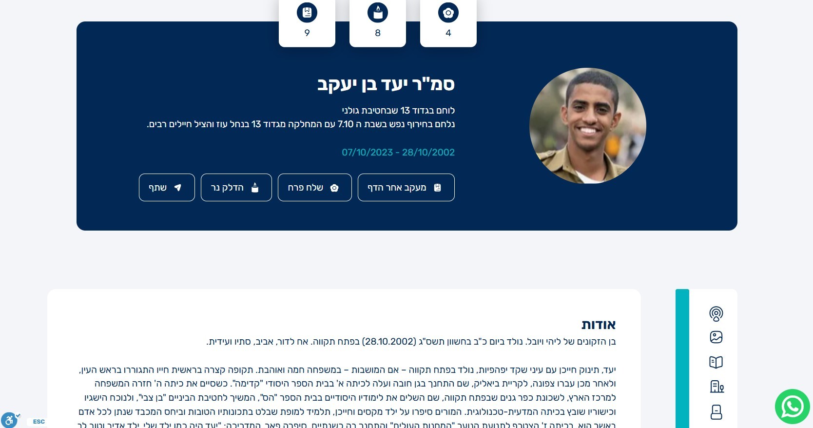 He served as a communications coordinator in the 13th Battalion of Golani in the north.
